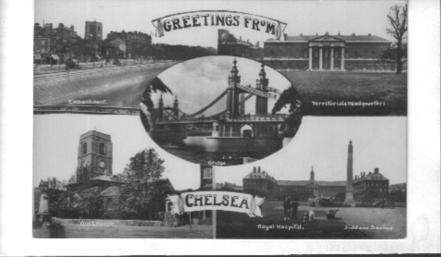 In the 1960s Pamlin Prints published two sets of five postcards for the Royal Borough of Kensington and Chelsea Libraries Series: Set 1 comprised the Kensington views; and Set 2 the Chelsea views, as follows: